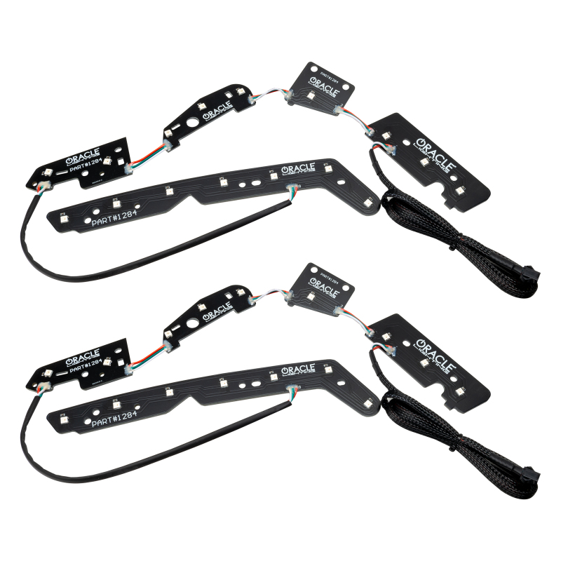 Give your Jeep Grand Cherokee the attitude you've always wanted with the ORACLE Lighting Dynamic ColorSHIFT(tm) RGB Headlight DRL Kit! This dynamic RGB DRL is made to enhance the Grand Cherokee with OEM DRL Headlights with moving multi-color patterns. This new technology from ORACLE Lighting, called Dynamic ColorSHIFT, is the latest advancement in our expansive lighting modifications. The Dynamic features allow the user to run multiple moving color patterns through the PCB, creating a vivid eye-catching lighting effect. Conveniently controlled through a free smartphone app, the system features over 200 pre-programmed moving patterns as well as static color control and white mode for normal street driving. In addition to the pre-programmed features, the user can also create custom designs through pixel editing in the app. Adding color-changing headlights to the Grand Cherokee gives the vehicle a new look that will grab attention. These replacement boards are a direct replacement for the OEM boards creating a seamless installation to get that new look you crave! Fitment:- Altitude- High Altitude- Limited X- Overland- SRT- Summit- Trackhawk- Upland