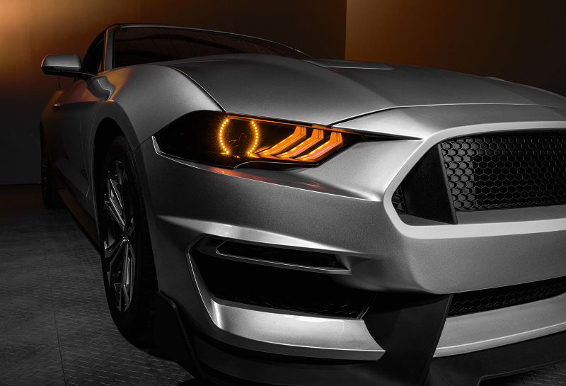 The 2018-2023 Ford Mustang Dynamic ColorSHIFT(tm) Halo Kit with DRL Upgrade from ORACLE Lighting packs a ton of innovative features. These RGB headlights for 2018-2023 Mustangs have unique options such as Sequential FLOW Turn Signals, white DRL mode, and smartphone control all in one package! Dynamic ColorSHIFT(tm) features individually addressable LEDs which pack a ton of unique features. The Dynamic features allow the user to run multiple moving color patterns through the LEDs, creating a vivid eye-catching lighting effect. The color-changing motion flow effects are conveniently controlled through a free smartphone app, and the system features over 200 pre-programmed moving patterns as well as static color control and color wheel. The integrated controller features both DRL and turn indicator inputs. The switchback LED indicator features our exclusive Dynamic FLOW turn signal effect. The white DRL trigger automatically switches the LEDs to pure white when you start the vehicle (connect DRL trigger to ignition switched source). Professional installation recommended with our premium silicone sealant. White and amber are considered on-road legal colors. Other colors not intended for on-road use, please verify your state and local driving laws.