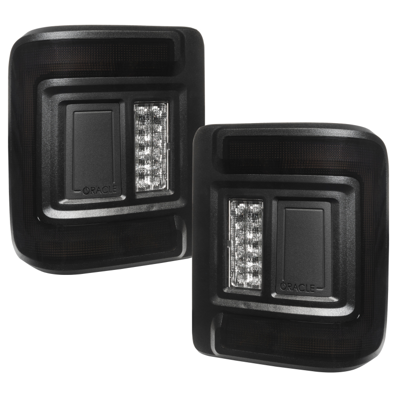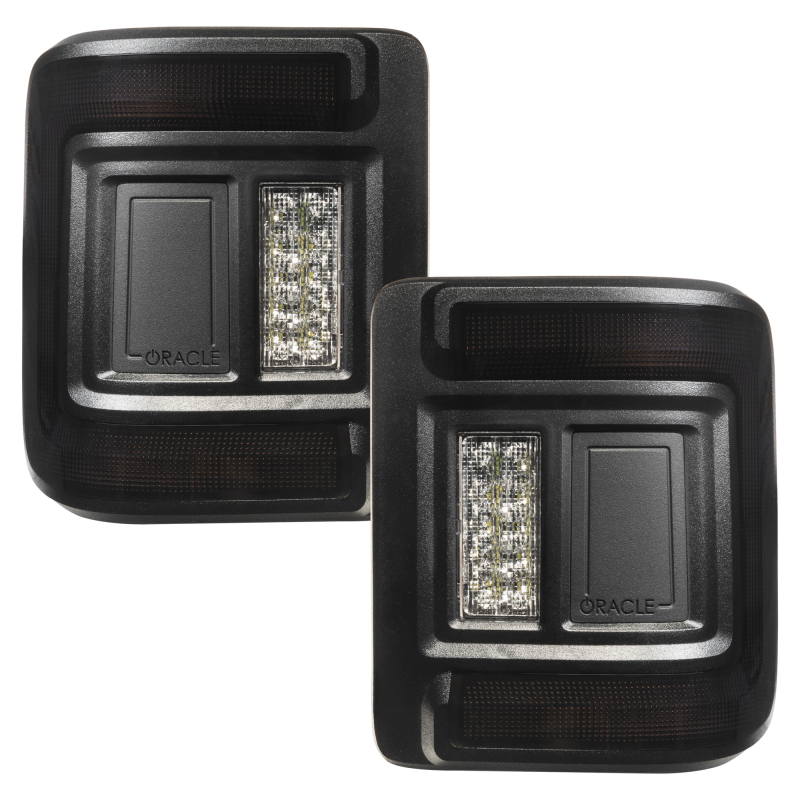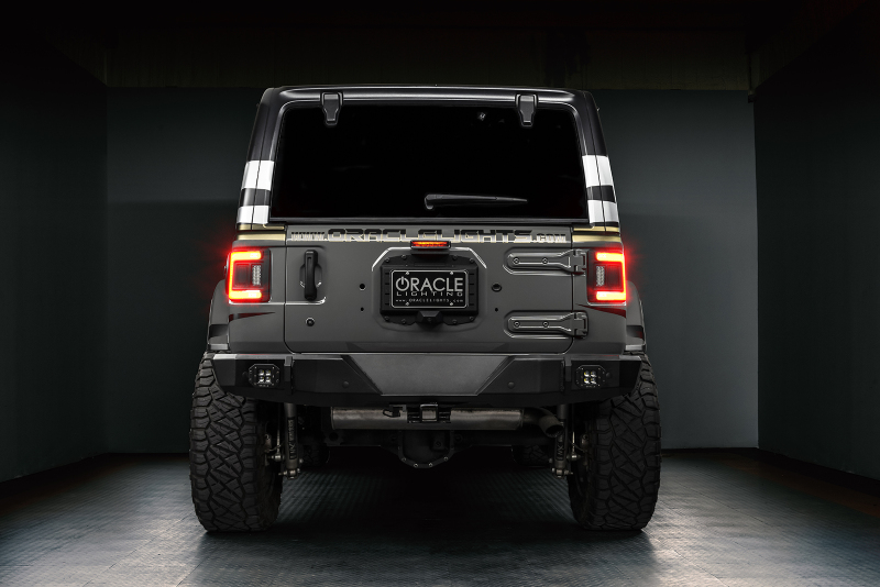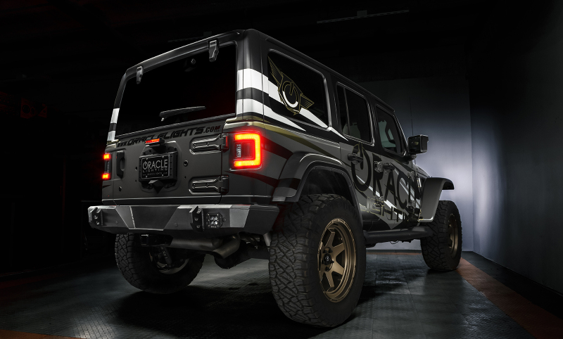 Designed to fit flush with the rear end of the Jeep Wrangler, the new JL Flush Tail Lights from ORACLE Lighting offer new LED features and improved styling. This innovative design is a sleek tail light for Jeep Wrangler JL's that wraps tightly around the truck. Protruding out significantly less than the factory tail lights, this low-profile design avoids damage while trail riding. Because of the nearly flush wrap-around design, the lighting can be visible from any rear angle, making it a unique solution for the Jeep. These Jeep Wrangler JL tail lights provide improved aesthetics and functional LED lighting features including high-powered reverse lights and signature perimeter lighting. In addition to standard features, the plug-and-play design features an enhanced reverse function and caters to the Jeep's optional cross-traffic sensor. The reverse light features 12 high-powered LEDs for optimal rear illumination. The cross-traffic sensor can be swapped directly over from the factory assembly and easily installs into the ORACLE Lighting tail lights for Jeep Wrangler JL. These flush-mount tail lights are compatible with base and LED packages. Gain sleek styling that compliments the original body lines and tons of innovative features. With the superior quality and durability that ORACLE Lighting is known for, these tail lights are the perfect upgrade for your Jeep Wrangler JL!
