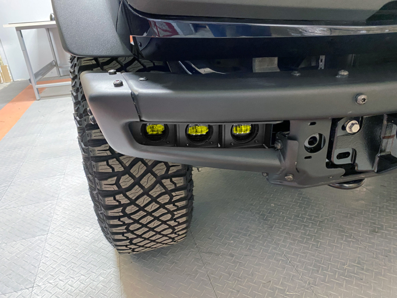 ORACLE Lighting has designed a LED triple fog light kit for the steel factory modular (?mod") bumper on the 2021+ Ford Bronco. Quickly add functional forward-facing LED lighting to your vehicle to illuminate any adventure. The six high-powered emitters provide significant visibility through advanced optics with a 6000 raw Lumen output and a precise no-glare design that avoids blinding other drivers. The powder coat finish, blacked-out appearance, and IP68 waterproof rating offers a sleek look with superior durability to withstand any conditions. The simple bolt-on installation uses factory bolt locations and requires no drilling or modifications for the Bronco fog light kit. Typical installation time is under 30 minutes and can be successfully installed using common hand tools by even the most casual enthusiast. This complete kit includes 2 assembled steel housings, 6 LED Emitters, Wiring Harness, and all necessary hardware. Score first-class LED lighting that illuminates wherever your adventures take you with the ORACLE Lighting Ford Bronco Triple Fog Light Kit!