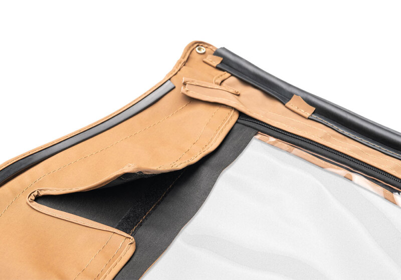 Replace your aging, worn out factory soft-top and gain some additional storage space inside the driving compartment. All the features of the original factory top with exclusive Rampage additions which includes two zippered storage pockets. Produced in original factory specifications and colors. The Rampage replacement top easily installs over factory framework, attaches to factory mounting points and Original Equipment belt rail attachment System. Fits all factory applications. Includes upper door skins that slip over the OE upper doorframes in either clear or tinted windows. For half door applications only.