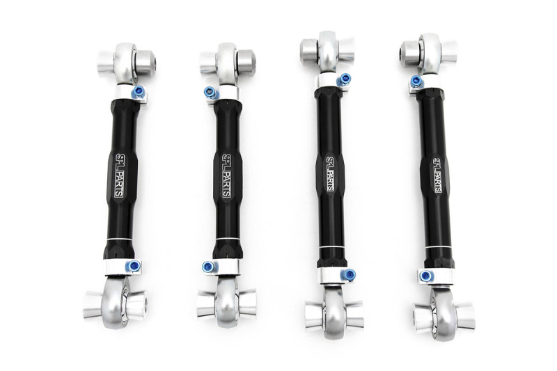 Stock non-M arms are made from sheet metal that is merely spot welded together, which tends to flex and bend under moderate loads let alone track day or racing stresses. If you use grippier tires and an engine with more torque, then the stock arms aren't able to provide stability and consistent handling. BMW E9X/E8X Rear Upper Arms, which include both the guide (traction) and camber (wishbone) arms, feature gun drilled 2024 Aluminum links that are Black Anodized to prevent corrosion and provide a durable finish. Our exclusive 360 rotating 6061-T6 Aluminum Clamps allow quick, precise adjustment with Blue Anodized Titanium Socket Head Cap Screws, which shaves even more unsprung weight without compromising strength. Custom 3 piece FK Bearings Rod Ends manufactured in Connecticut feature a Teflon liner to provide quiet operation, low friction, smooth articulation, and eliminates bushing deflection under load. The PTFE linet is chemically bonded to the inner diameter of the race. The liner offers a very high load carrying capacity and has greatly increased dynamic wear characteristics. The operating temperatures of the liner ranges from -65º