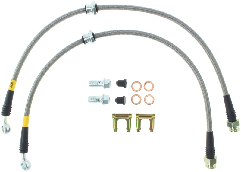 StopTech Stainless Steel Braided Brake Lines provide a quicker; firmer; more consistent pedal response by maintaining consistent brake pressure. Additionally; stainless steel lines provide precision brake modulation; especially during threshold braking. The improvement in pedal feel is more dramatic on older vehicles where the factory rubber line may have softened and swelled due to age. A variety of end fittings are available to meet application needs. All fittings are engineered for proper fit and durability. All necessary brackets and fasteners are included with each line kit.