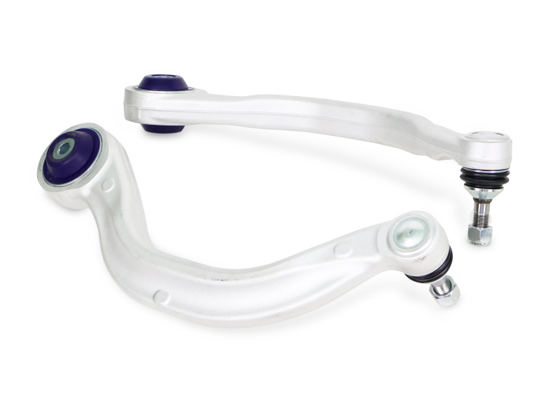 SuperPro's fitter friendly complete front lower control arms offer not only a significant performance and durability upgrade - they also offer an easy DIY or professional install. No pressing in new bushings - these arms arrive fully assembled with pre-installed SuperPro bushings and new ball joints. We've worked hard to make these a huge bang-for-the-buck upgrade with fully upgraded and outfitted arms offering a front end refresh for your ride! Instant EV torque, a heavier vehicle platform, and lackluster OEM durability all make for short-lived OEM control arm and radius arm bushings on Tesla models. SuperPro pairs a robust lifetime bushing with an all-new arm and ball joint assembly offering a complete installer-friendly solution that offers vastly improved performance and durability over the OEM rubber-bushed arms.