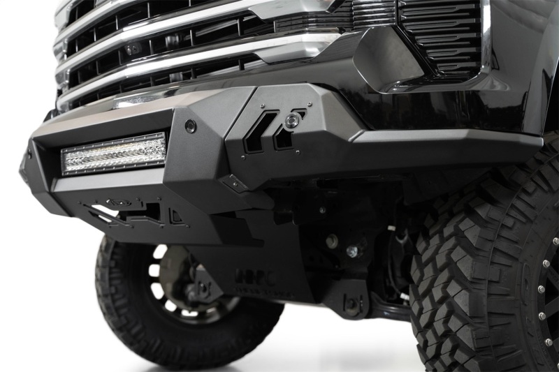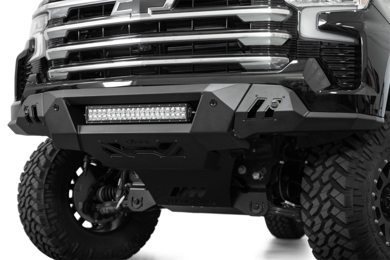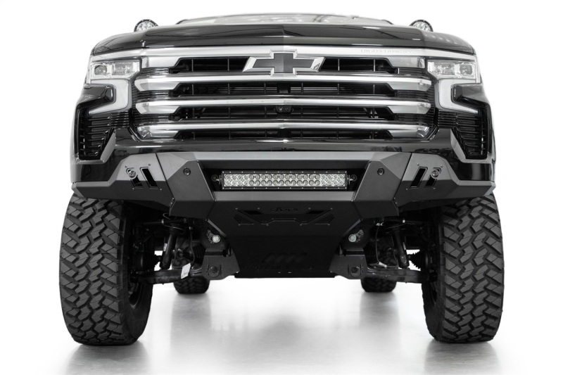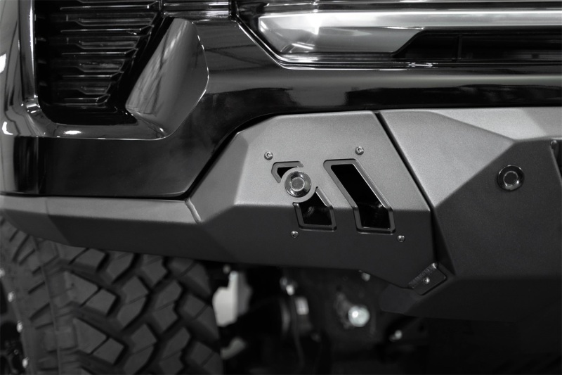 Our Black Label Front Bumper was designed to complement the factory style, and features unrivaled fitment and an easy installation. The Black Label line is the most affordable series we've ever released. At the center of the bumper is a mount for a 20-inch LED light bar for supplemental lighting on the trail or the worksite. The OEM parking sensors retain full functionality with integrated mounting points. The design retains full functionality of the adaptive cruise control feature without the need for a relocation bracket. The Black Label Front Bumper is finished in a hammer black powder coat, while the accent panels are finished in satin black. As always, this is fully bolt-on and Made in America.