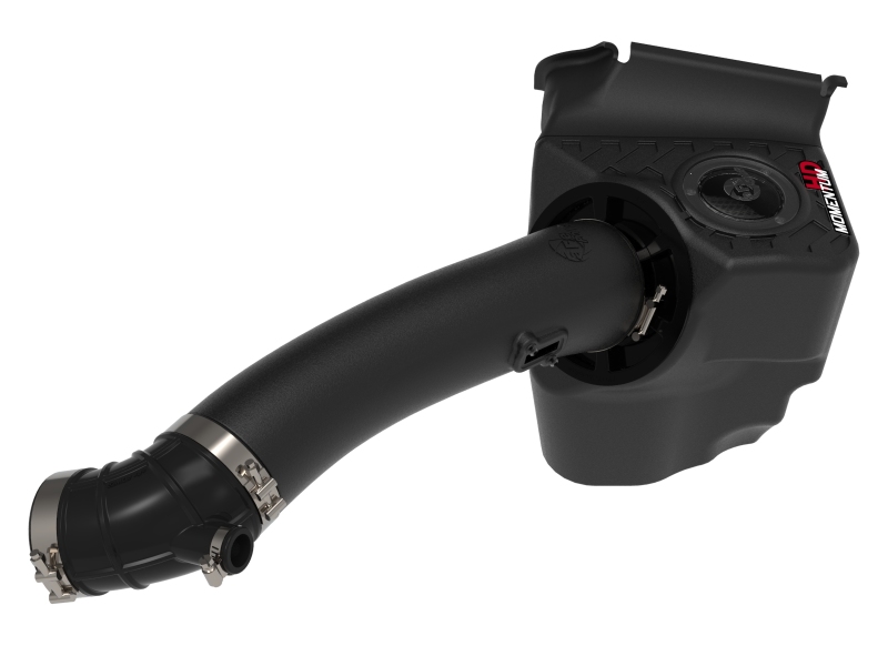 Momentum’s unique filter-to-housing interface was built to feature the largest air filter possible. This 8” tall, pre-oiled 360-degree radial flow air filter has a 4” round flange and features our non-oiled Pro DRY S media. The Pro DRY S performance air filter features 3-layers of progressively finer porosity synthetic media that does not require oil providing maximum convenience. Its inverted top and large surface area provide much longer life between maintenance intervals, while reinforced metal provides maximum strength to prevent filter collapse. The smooth one-piece sealed housing, constructed of heat-resistant cross-linked polyethylene (XLPE), features our patented pending filter-to-housing interface. Its innovative design minimizes the total number of parts, making for an easy installation. A large, clear sight window allows for hassle-free filter inspection, without having to disassemble your system. The soft EPDM hood seal is included to keep out hot engine air and create a perfect seal to the hood. This system features a high quality, computer-designed, dyno-tuned intake tube to achieve maximum power gains while maintaining a perfect fit. Its XLPE material is heat soak resistant and extremely durable. Momentum HD intakes are designed with fewer parts for a fast and easy installation. This is a direct fit intake system that utilizes factory mounting points and requires no cutting or modifications. All necessary clamps, couplings, and hardware are included