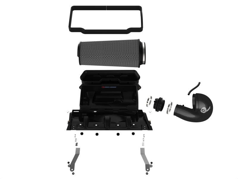 This massive 18” tall 360-degree radial flow air filter features our pre-oiled black Pro 5R media with five layers of progressively finer cotton gauze media for maximum performance. It provides your engine with the largest amount of high-flowing air and delivers the highest power gains in most cases. This media is perfect for street and/or track use. This air filter is surrounded by expanded metal that provides additional protection, preventing filter collapse and direct impact. The included massive air filter is surrounded by an open-element XLPE (cross-linked polyethylene) polymer housing that minimizes warm engine air for maximum performance. Its open design allows for easy viewing of the air filter and delivers an aggressive Air Intake sound. The housing incorporates both the factory hood air inlet scoop and the grille inlet using no additional hardware. The lightweight tubes are computer-designed to achieve maximum power gains while maintaining a perfect fit. Manufactured from 100% twill weave carbon fiber, they feature zero fiberglass and are clear-coated for the highest quality construction. Premium stainless steel clamps and a flexible silicone coupling are used for strength and durability while also providing the most secure installation available.