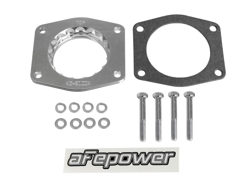 The Silver Bullet throttle body spacer is constructed from precision machined 6061-T6 billet aluminum and is designed using a serrated/helix design that creates turbulence in the airflow at the point just prior entry into the engine optimizing the combustion cycle. This turbulence helps the air/fuel charge burn completely providing increased horsepower, torque and improved throttle response. During testing, Silver Bullet throttle body spacer have resulted in 4 Horsepower and 8 lbs. x ft. of torque max gains.