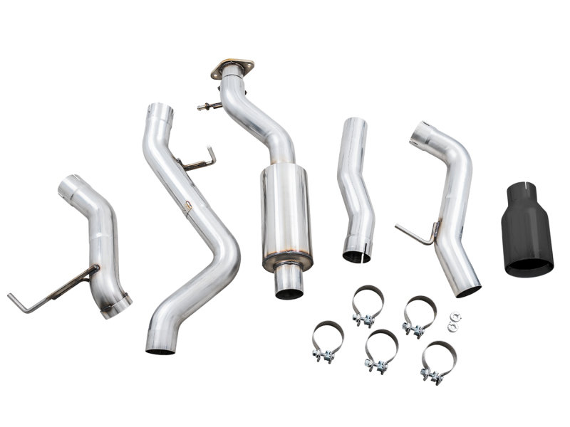 Handcrafted from US-made 3” T304L stainless steel, the 0FG Exhaust is a straight-through Cat Back configuration applicable to all Bronco models – 2.3T, 2.7TT, 2-door and 4-door – with modular capabilities unlike anything on the planet. The 0FG Exhaust features a bespoke AWE resonator in the mid pipe to produce an appropriate dose of aggression, followed by smooth bends towards the rear of the Bronco. On the way to the rear, depending on how many doors there are on your Bronco, lies an included adapter to bridge the difference in length across models. 2-door owner simply won't need these adapters, but 4-door owners will be thrilled. The 0FG modularity shines at the final breakpoint in the exhaust route. Not only does the 0FG accommodate various tip options, it also accommodates AWE’s BashGuard™. What’s BashGuard? Thanks for asking. The AWE BashGuard™ is included in every 0FG exhaust, and enables the 0FG to be the one exhaust to rule them all. Thanks to the modularity in the rear, simply remove the rear axle-back portion of the 0FG and replace it with the high-tuck BashGuard™. BashGuard™ is appropriately equipped with a .125” thick reinforced stainless ring. Perfect for bashin’. This version of the AWE Bronco Exhaust is the Single Side Exit: one big ‘n’ proud 5” double-walled tip in diamond black, straight-cut tip exiting behind the left rear tire, adding a dose of aggression to the Bronco you never knew it needed. One exhaust. Every terrain. AWE's No CEL Guarantee, Perfect Fitment Guarantee, and Lifetime Warranty come standard.