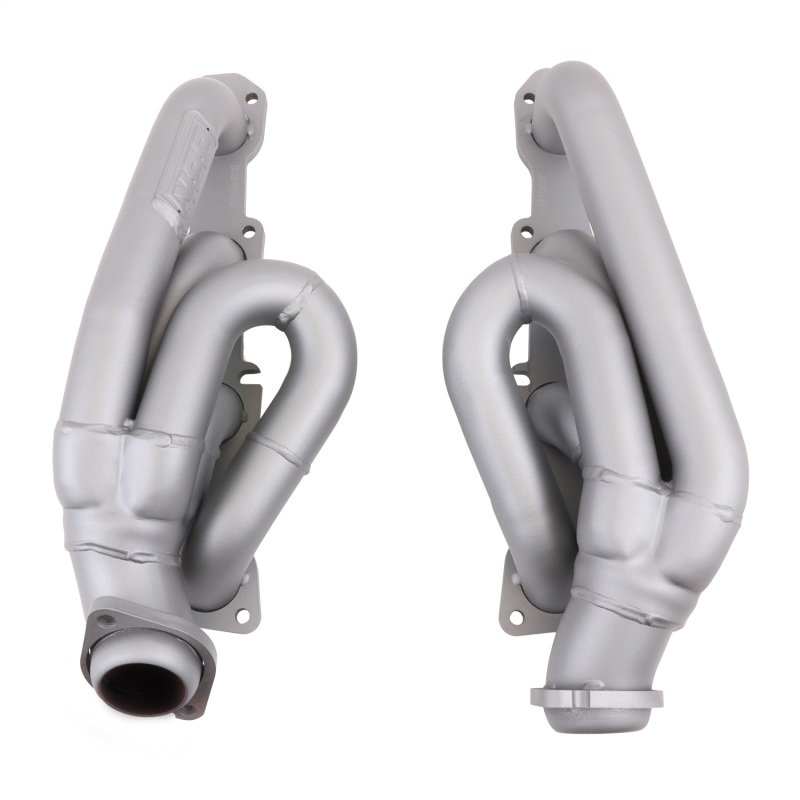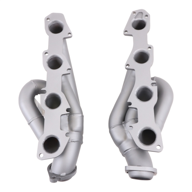 These BBK Performance shorty tuned Length exhaust Headers are designed and constructed as direct fit replacements for all 04-08 Dodge Ram truck 5.7L applications. Each header is manufactured with 1-5/8 in. CNC mandrel bent tubing that offers unrestricted exhaust flow for increased horsepower and torque over factory OEM manifolds. BBK tuned Length headers offer improved scavenging waves for better combustion, which leads to improved performance and fuel economy over stock or equal Length headers. As with all BBK Performance exhaust headers they feature a 3/8 in. laser cut exhaust flange for additional strength and a guaranteed leak free fit. All headers are robotically and precision hand welded and then pressure tested to ensure years of reliability and performance in the real world. All BBK exhaust headers are available in a titanium ceramic or polished silver ceramic coated finish and include new exhaust header gaskets, header bolts and hardware to complete the installation.