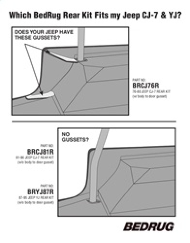 BedRug 87-95 Jeep YJ Rear Kit 4pc Cargo Kit (Incl Tailgate & Cargo Liner) - BRYJ87R