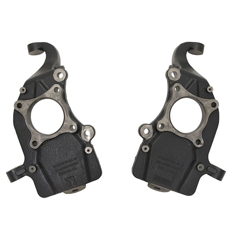 In 1983, Belltech developed one of the industry's first revolutionary products to help jump start the Sport Truck craze, the Drop Spindle. By relocating the spindle pin (Note: Application, while improving handling and retaining factory ride quality. Belltech spindles maintain critical suspension geometry and eliminate excessive ball joint, shock and tire wear common to other methods of lowering. Each spindle is crafted from powdercoated, CNC machined, high strength ductile iron castings providing the structural integrity to meet and exceed all factory specifications & requirements.