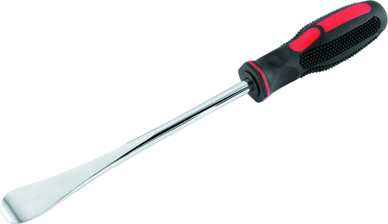This tire iron features a handle with a high-grip surface for confident leverage. Its super-smooth chrome end eases beads on and off while preventing rim marring and tube pinching. Its tempered steel resists deformation and it has a cold-formed end for strength.