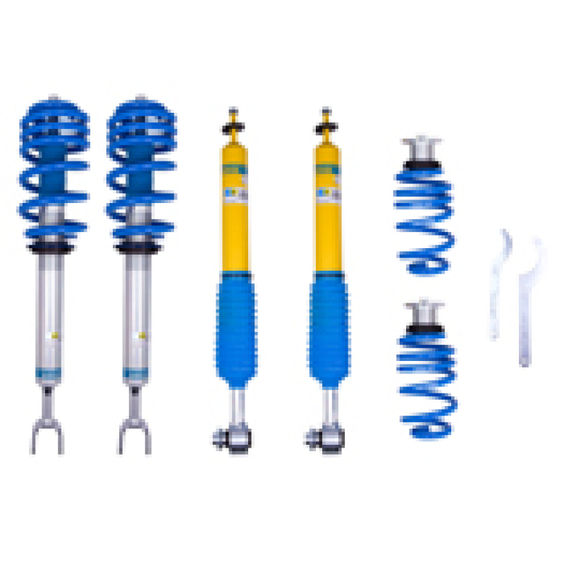 Bilstein B14 (PSS) suspension kits feature ride height adjustability in an OE quality, direct fit package. These kits offer monotube performance dampers with matched springs that are tuned for each specific application. The zinc coated and threaded body design will give you the flexibility to find the perfect ride height setting for your intended use while providing unsurpassed protection against the harshest road elements. B14 (PSS) suspension kits are made in Germany and feature technology tested on the famed Nürburgring.