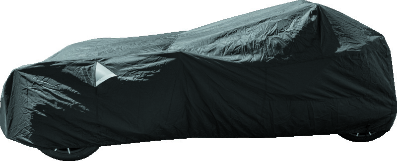 Heavy-duty, all-weather, premium cover from CoverMax® designed specifically for Polaris® Slingshot models. 300-denier polyester with PU coating and waterproof seams protect from the elements, while the ultra-soft 30g velour lining protects paint from scratches. Features two top covered vents to improve ventilation and reduce condensation. The Covermax cover for the Slingshot also features a tailor-fit elastic skirt with adjustable hook-and-loop center straps to secure the cover while ensuring a custom-style fit. This is the ultimate cover to protect your Slingshot.
