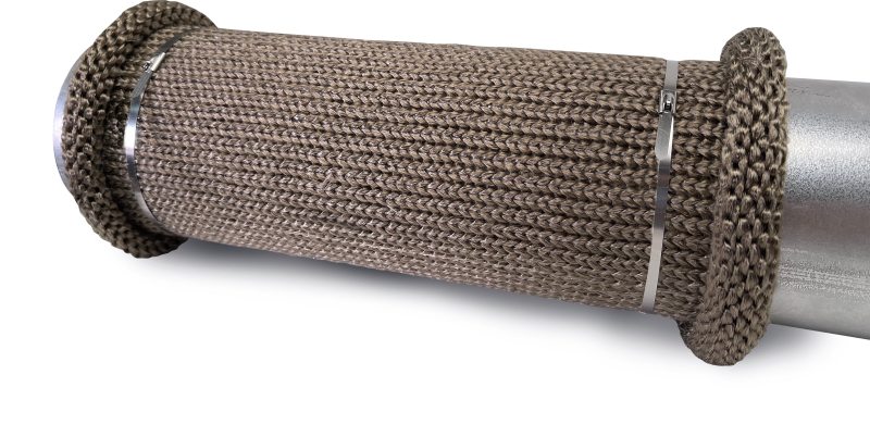 Titanium Knitted sleeves are available in different precut lengths and by the foot sizes. They have a maximum temperature rating of 1800°F with a continuous rating of 1382°F. Perfect for larger exhaust pipes as they can expand up to 1.5 times normal diameter allowing to install over flanges and sensor threads. You can cut to length and simply roll the ends. Protect components and keep heat from transferring into the cabins. Titanium Knit Sleeve, 24 in. finished length for 4 in. tube. Includes ties and tool.