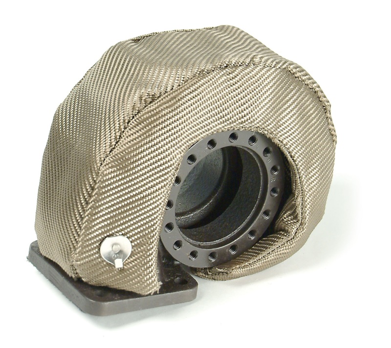 Turbo Shields solve the problem of extreme underhood heat, stops heat damage of painted or carbon fiber hoods and helps turbos spool faster. Custom fit Titanium Turbo Shields(TM) provide the ultimate means of reducing turbo lag and serve as a superior heat barrier. Titanium Turbo Shields can withstand direct heat up to 1800°F and 2500°F radiant heat. Allowing more heat in the turbine and less damaging underhood radiant heat resulting in a boost in horsepower! Stronger and more durable than other turbo blankets or shields, Titanium Turbo Shields include a hi-temp rated silica insulation under the tight outer layer for extra added protection against extreme turbo-generated heat. We have added a true riveted anchor along with added seam protection to accommodate the higher horsepower levels of heat. Riveted anchors incorporated to secure shield Hi-Tech custom carbon fiber look Ultimate thermal barrier reduces turbo lag Double reinforced seams inside & outside Available as Shield only or in a kit Each Kit includes: 1 - Turbo Shield 1 - 2in x 15ft roll of Titanium Exhaust Wrap 2 - 20in Stainless Steel Locking Ties 1 - 5ft roll of fastening wire
