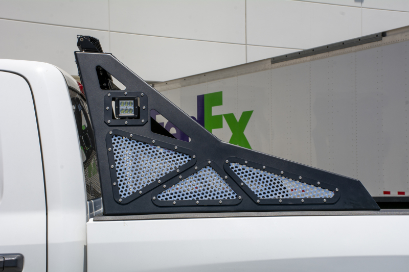 The DV8 RRDR2-01 chase rack is a bolt on rack that provides for extra lighting and mounting solutions for the rear of your 2010-2018 Dodge Ram 2500. This rack completely enhances the look of the truck and accommodates lighting for extra visibility anywhere it is needed. The rack installs easily, is completely removable, and fits the OEM lines of the truck perfectly. Features: Comes powder coated black, Accommodates multiple lighting combinations, Simple and strong bolt-on design, Comes with mesh aluminum inserts, Excellent light mounting solution, Sold As: Each.