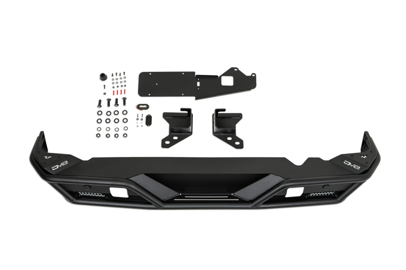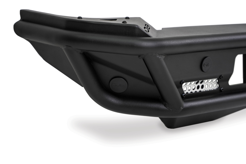 DV8 Offroad?s 6th Gen Bronco Competition Series Rear Bumper is a steel tube & plate constructed low-profile bumper inspired by desert racing. Towards either side of the bumper are light mounts suited for 3-inch LED light pods. Its low-profile design allows you to fit up to a 37-inch spare tire. The OEM reverse sensors are integrated into the bumper via mounting holes, this retains full functionality of the feature. It also accommodates the factory hitch. There are two, paintable aluminum accent panels that help cut weight and add to the style of the bumper. Installation is a simple bolt-on process.