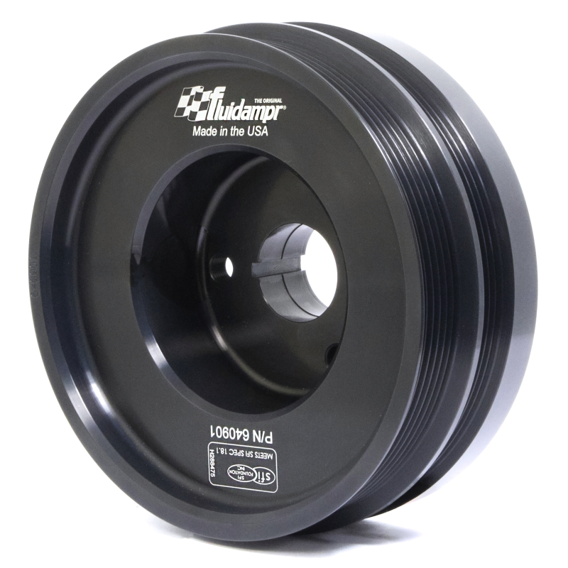 Protect your engine. Modifications can compromise your stock harmonic balancer. Install a Fluidampr performance damper early for best durability. Superior viscous damper design controls harmful torsional vibration across the entire rpm range. Reduce wear on engine components. Reduce risk of crankshaft failure. Improve timing. Unleash lost torque and horsepower. Precision CNC machined and balanced high-grade steel components. Corrosion resistant black zinc finish with engraved timing marks. No maintenance required. Trusted by leading engine builders worldwide. SFI 18.1 certified. Made in USA.