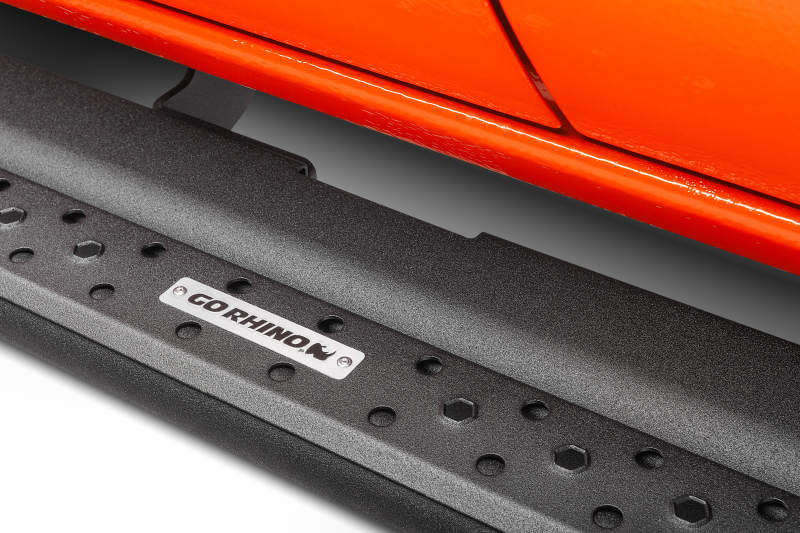 The Go Rhino Dominator DSS Slider-Step features a cab length body mount slider design on the bottom surface and a flat, punched steel step plate for a safe, no-slip grip. A two bar design with outer rub rail gives it both a unique, aggressive appearance and increased protection for your vehicle’s body panels from trail obstacles and road debris. The steel step plate is removable for a minimal, off-road look or paintable for customization. Installation is easy and the utilization of the OEM step mount locations means no drilling or cutting required. Hardware and brackets are included. The DSS Side Steps come with a Limited Lifetime warranty on materials and construction and a 5 year warranty on the Textured Black Finish.