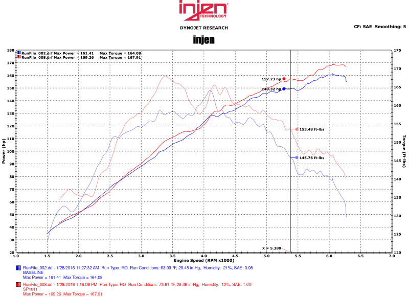 Is your engine choking for air and in need of some additional horsepower? If so, Injen has exciting news for you! The SP series of cold air intakes from Injen Technology will allow your engine to breathe deeper and enhance the performance that you've been craving. The SP series of cold air intakes is Injen's flagship system in their lines of traditional aluminum cold air intake systems. Injen Technology is the world's first tuned air intake system and holds four (4) patents on the tuning process of an intake system ? something no other manufacturer can claim. The SP series of cold air intakes feature many of Injen Technology's patented tuning process, including MegaRam (MR) Technology (Patents 7,359,795 and 7,669,571), Air Fusion (Patents 7,757,548 and 7,721,699), and many other innovations that keep Injen Technology at the forefront in the performance aftermarket. , , The soul of this intake is found within 6061-T6 aluminum air intake tube that provides a smooth uninterrupted path for highly efficient airflow. Our engineers have painstakingly designed the intake to provide the highest levels of safe power, along with clean aesthetics that will impress every time you open your hood. In addition to the impressive power increase, the Injen team has ensured that a safe Air fuel (A/F) ratio has been maintained throughout the power band. , , Additionally, this SP intake includes a fully serviceable Injen SuperNano-Web dry air filter, which provides increased filter surface area allowing for greater airflow and unbeatable filtration. If that's not enough, the Injen SP performance intake provides power you can hear and feel! This intake provides an aggressive and throaty tone that is unmatched in the aftermarket. Want to add that personalized touch to your intake? You're in luck, as Injen also offers this intake system in multiple finishes. To top it all off, this SP CAI kit includes the unbeatable Injen Technology limited Lifetime Warranty!