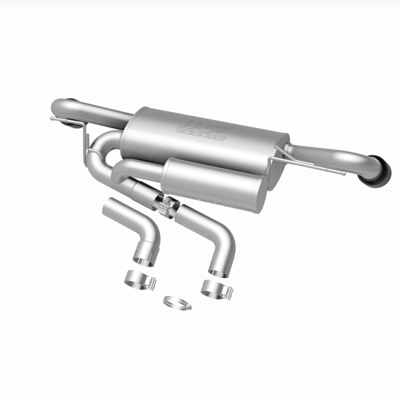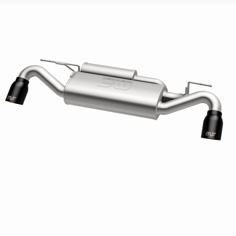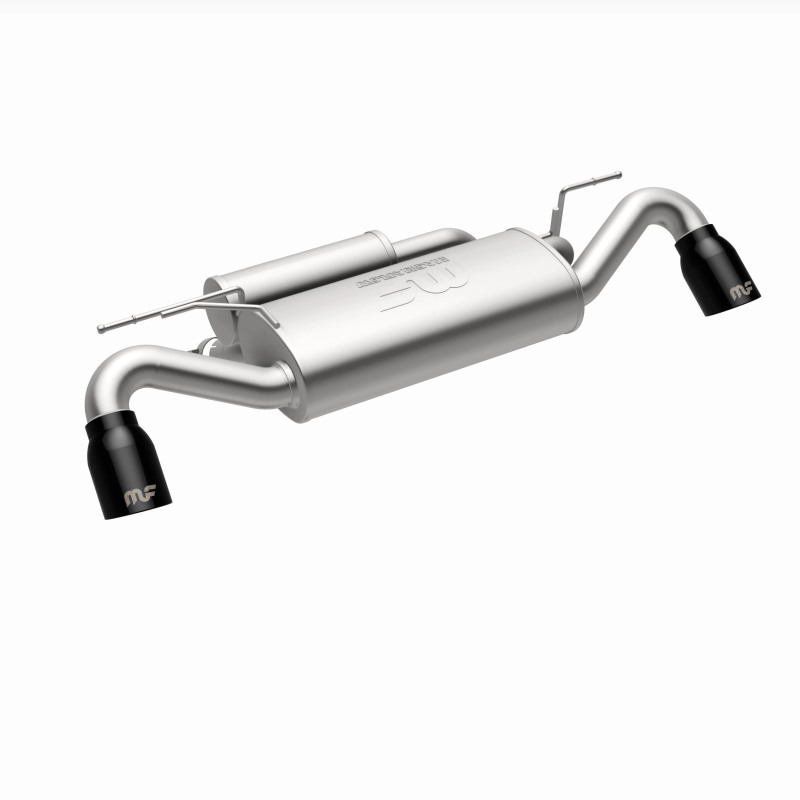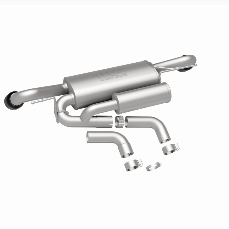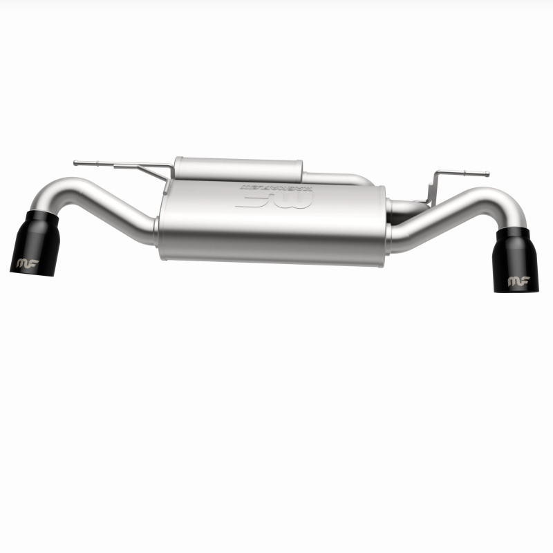 The MagnaFlow Ford Bronco Sport Street Series Axle-Back Performance Exhaust System #19553 brings MagnaFlow’s deep signature sound and dyno-proven performance to your 2021-2025 Ford Bronco Sport. Exhaust kit #19553 is compatible with the 1.5L and 2.0L EcoBoost engine options and utilizes MagnaFlow’s No Drone Technology (NDT) to keep unwanted noises in check at lower engine speeds. #19553 is engineered to facilitate moderate exterior sound levels while keeping exhaust volume at a mild level in your SUV’s interior. This 2021-2025 Ford Bronco Sport exhaust system features mandrel bent, 2.5” diameter tubing that flows through an NDT resonator and a straight-through muffler before terminating in a dual exit layout with 4” diameter black chrome finished tips. The entire exhaust kit was created using CNC precision robotic manufacturing and durable 100% stainless steel construction. Exhaust system #19553 is covered by MagnaFlow’s limited lifetime warranty.