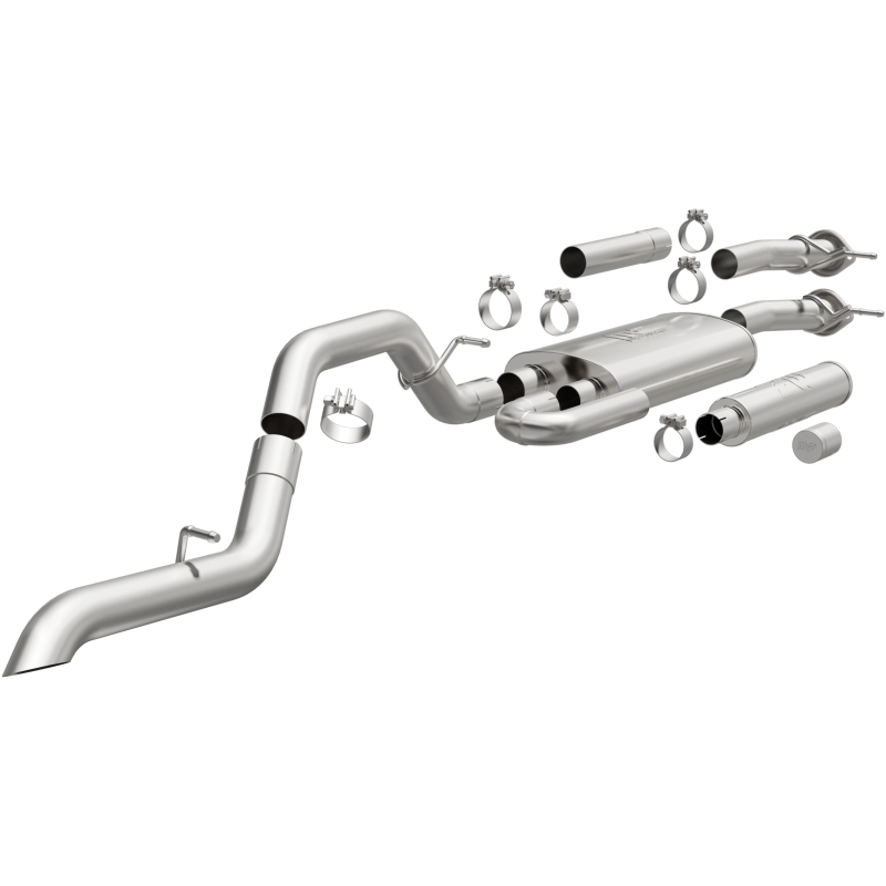 The MagnaFlow Chevrolet Colorado / GMC Canyon Overland Series Cat-Back Performance Exhaust System #19569 is engineered to augment your overland-ready Chevrolet Colorado 2015-2022 or GMC Canyon 2015-2022 with MagnaFlow’s famous deep exhaust tone and dyno-proven performance. The weight of MagnaFlow exhaust kit #19569 has been optimized to improve your rig’s utility, while its mandrel bent 3” main piping and single straight-through muffler are designed to sit much closer to the underside of your truck. Combined with a no-tip, high clearance, passenger-side rear exit, MagnaFlow #19569 greatly improves the capability of your Colorado or Canyon with enhanced ground clearance and superior departure angles. #19569 utilizes one of MagnaFlow’s No Drone Technology (NDT) resonators in order to cancel out the natural droning frequencies of your truck and keep the interior quiet on long drives. This Overland Series exhaust system was designed to be compatible with the most common bolt-on aftermarket modifications. The use of CNC precision robotic manufacturing enables the system to fit your rig perfectly, allowing for hassle-free bolt-on installation. The entirely stainless-steel construction of MagnaFlow #19569 is covered by MagnaFlow’s limited lifetime construction warranty.