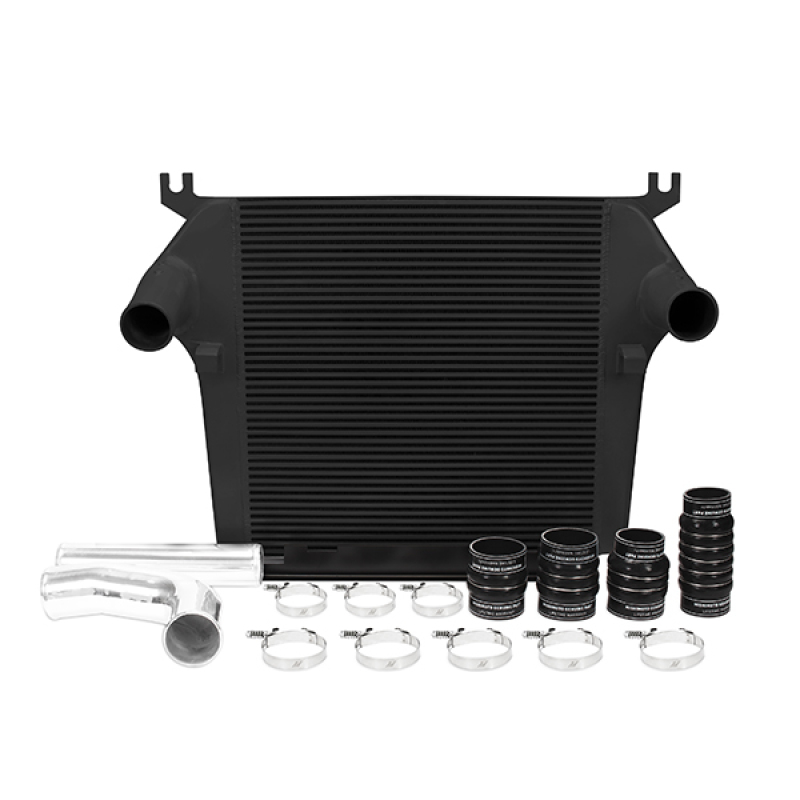Mishimoto has released a performance intercooler kit for the 2010-2012 Dodge 6.7L Cummins. This kit includes everything you need to improve airflow, substantially decrease air-charge temperatures, reduce EGTs, and support your truck at any power level. The first key component is the Mishimoto intercooler piping; our engineers have maximized airflow by eliminating restrictive bends, allowing for a smooth and unimpeded airflow. The piping is constructed of mandrel bent 3.5" aluminum polished to a mirror finish. This kit includes Mishimoto silicone boots with DuraCore technology and constant-tension T-bolt clamps for accurate and consistent holding force. Mishimoto DuraCore technology is the synthetic material that comprises the innermost layer of all Mishimoto silicone diesel boots. Compared to normal silicone, DuraCore provides superior resistance to heat, pressure, fuel, and oil. This effectively increases the life of our boots by preventing leaks and blowouts. This package is rounded out with the Mishimoto intercooler featuring extremely durable cast aluminum end tanks and a bar-and-plate core, all designed to provide cool, dense air to your engine. Our intercooler features an increase in core volume and reduces pressure drop, which results in an overall increase in engine efficiency. All the components in this kit are engineered to last, just like your truck. Offered with either a black or silver core, the Mishimoto 6.7L Cummins intercooler kit is protected by our signature lifetime warranty.