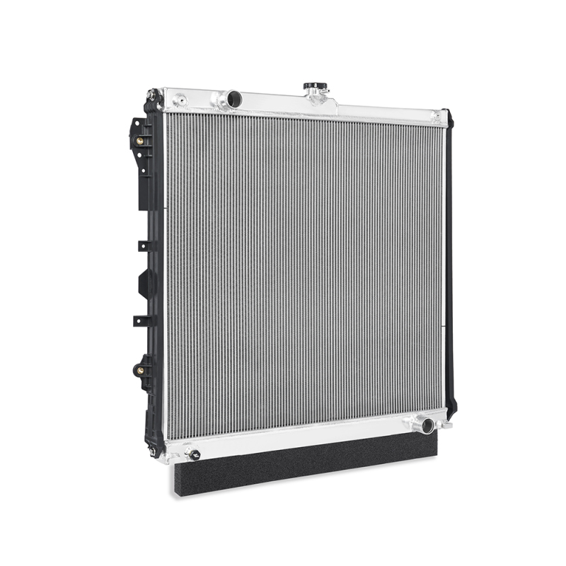 Toyota is an incredibly versatile manufacturer, providing a highly capable option in nearly every segment of the automotive industry from commuter cars to sports cars and full-size pickup trucks. The Tundra, Toyota’s full-size pickup, combines a spacious and comfortable interior, a rugged yet stylish exterior, and a dependable powertrain. The second-generation Tundra is nearing 15 years of age, which is a typical point at which many cooling system components begin to degrade and fail. One of the more common failure points is the plastic end tanks on the stock radiator. After thousands of heat cycles, this plastic hardens, becomes brittle, and can fail unexpectedly. Upgrade to our performance aluminum radiator to restore the integrity of your cooling system and improve overall efficiency. Our engineers designed an extremely durable, aluminum, direct-fit radiator for the 2007-2021 Toyota Tundra. Our strategically designed 2-row core provides a 70% increase in coolant capacity, along with a 12% increase in core volume and 15% increase in external fin surface area. Those improvements result in increased heat transfer and overall improved cooling efficiency. To ensure this unit is a bolt-on fit, we’ve incorporated an internal automatic transmission cooler which makes install a breeze and ensures transmission fluid temperatures are properly regulated. One common failure point with the Tundra cooling system is the plastic radiator mounting brackets securing this component within the core support. Often, these brackets will fail when attempting to replace the heat exchanger. Our team identified this issue, and our radiator includes new brackets, ensuring hassle-free installation. As with all our products, this Toyota Tundra Performance Aluminum Radiator includes our signature Mishimoto Lifetime Warranty.