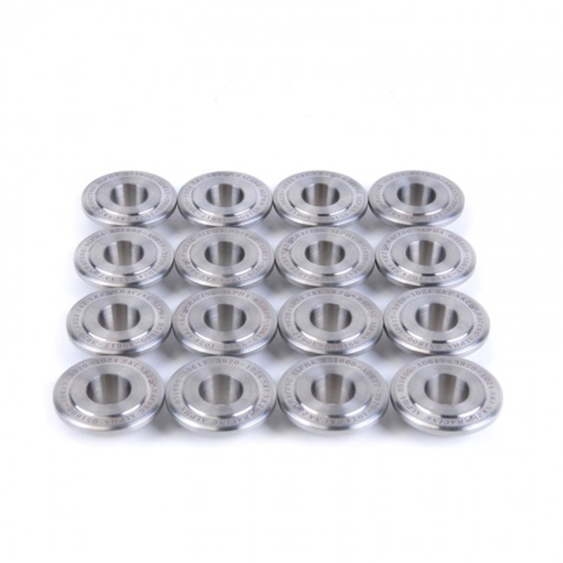 Skunk2 is proud to introduce its Alpha Valve Spring and Titanium Retainer Kit for Honda's D-series VTEC engines. Each kit includes Skunk2's high-quality valve springs and race-proven titanium retainers that are the result of nearly two decades of racing and engine building experience. Manufactured exclusively from super-clean, chrome-silicone wire milled in Japan, Skunk2's Alpha Valve Springs for Honda's D-series VTEC engines are a product of the company's years of racing and engine building experiences. Alpha Valve Springs are able to prevent valve float and maintain valvetrain stability at engine speeds in excess of 10,000 rpm. Skunk2's industry-leading Alpha Titanium Retainers are designed to significantly reduce valvetrain mass, resulting in more horsepower and improved valvetrain stability. Similar to Skunk2's already popular Pro Series Titanium Retainers, Alpha Titanium Retainers feature radius-cut edges for additional rocker arm clearance and reduced weight, strategically positioned lightening grooves, and reduced overall heights for better valve seal clearance and even further weight reduction. Alpha Titanium Retainers are manufactured using the latest 3D CAD (Computer Aided Design) and FEA (Finite Element Analysis) to ensure that each is optimized for strength as well as for reduced weight. Skunk2 engineers then test and prove their designs on the engine dyno as well as the race track. Once approved for manufacturing, only medical-grade titanium that's been ultrasonically inspected and certified is used. Following CNC machining, each retainer is then individually inspected to ensure proper hole diameter, taper, and that each are free from machining defects to ensure proper installed valve spring heights and pressures.