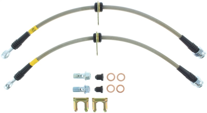 StopTech Stainless Steel Braided Brake Lines provide a quicker; firmer; more consistent pedal response by maintaining consistent brake pressure. Additionally; stainless steel lines provide precision brake modulation; especially during threshold braking. The improvement in pedal feel is more dramatic on older vehicles where the factory rubber line may have softened and swelled due to age. A variety of end fittings are available to meet application needs. All fittings are engineered for proper fit and durability. All necessary brackets and fasteners are included with each line kit.