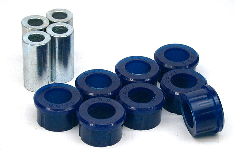 Control arm bushes stabilize the movement of the arms to ensure the correct geometry is maintained in all situations. Worn or rubber bushes in these locations lead to dynamic changes in wheel alignment that effect the handling of a vehicle as well as the tire life. SuperPro Bushings solve this issue and are the perfect repair or repair upgrade solution.